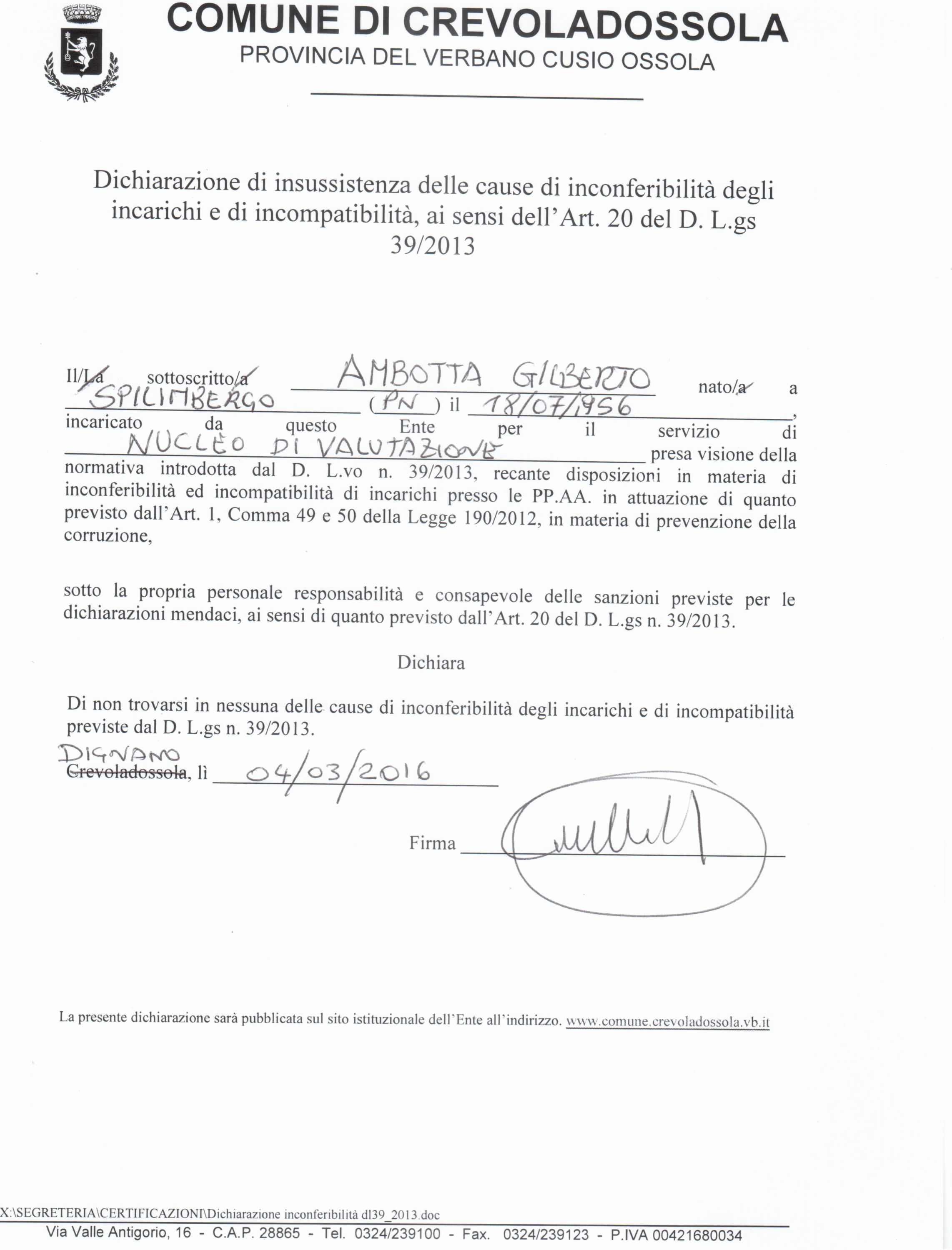 The personal data published can be used only pursuant to the conditions set forth in the regulation in force on the re-use of public information (Community Directive 2003/98/EC and Leg. Decree 36/2006 transposing the directive), in accordance with the purposes of their collection and registration and in compliance with the regulation on personal data protection. For further information, go to the website of the Data protection supervisor.