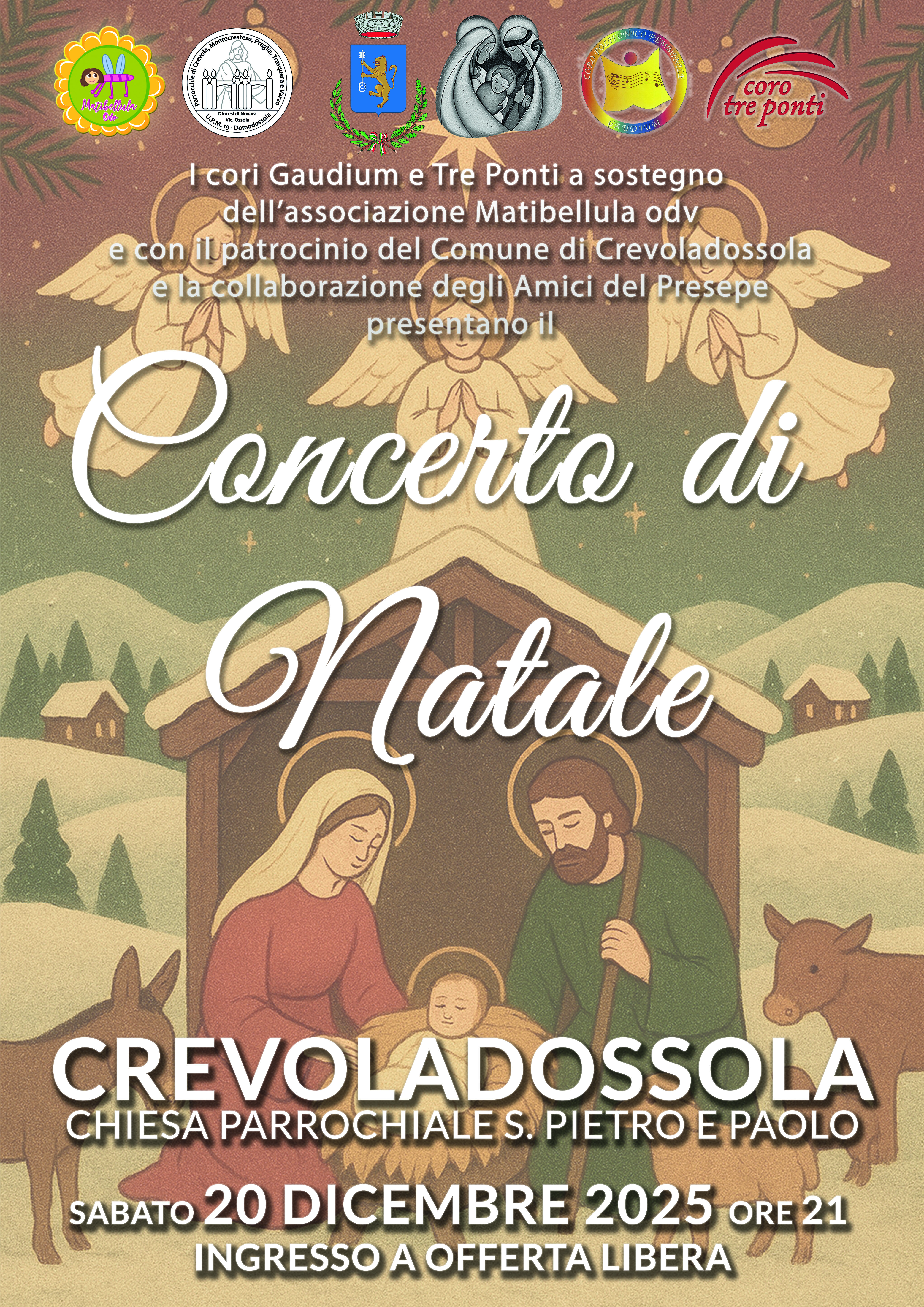 Con i Cori Gaudium e Tre Ponti a sostegno dell'Associazione Matibellula ODV, con il patrocinio del Comune di Crevoladossola e la collaborazione degli "Amici del Presepe di Crevola"