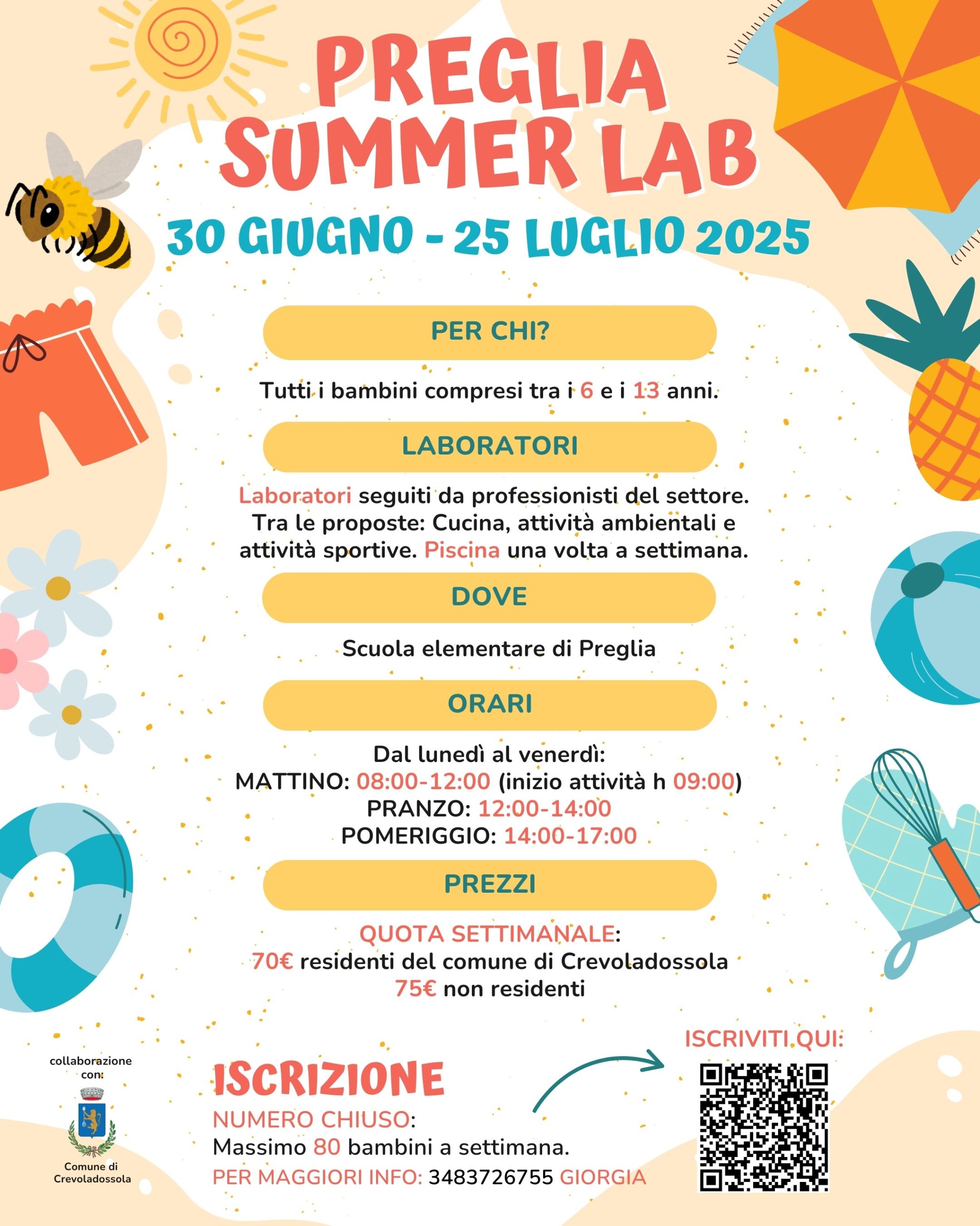 Il centro estivo comunale presso la Scuola Elementare di Preglia in collaborazione con l'ASD 2mila8 Volley Domodossola.