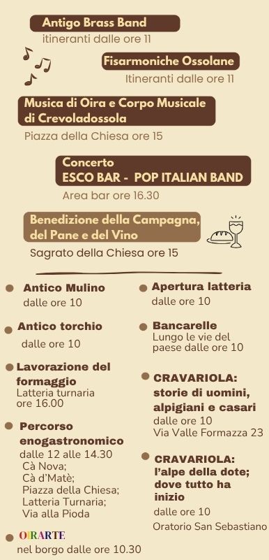 Musica di Oira e Corpo Musicale di Crevoladossola - Piazza della Chiesa ore 15.00
