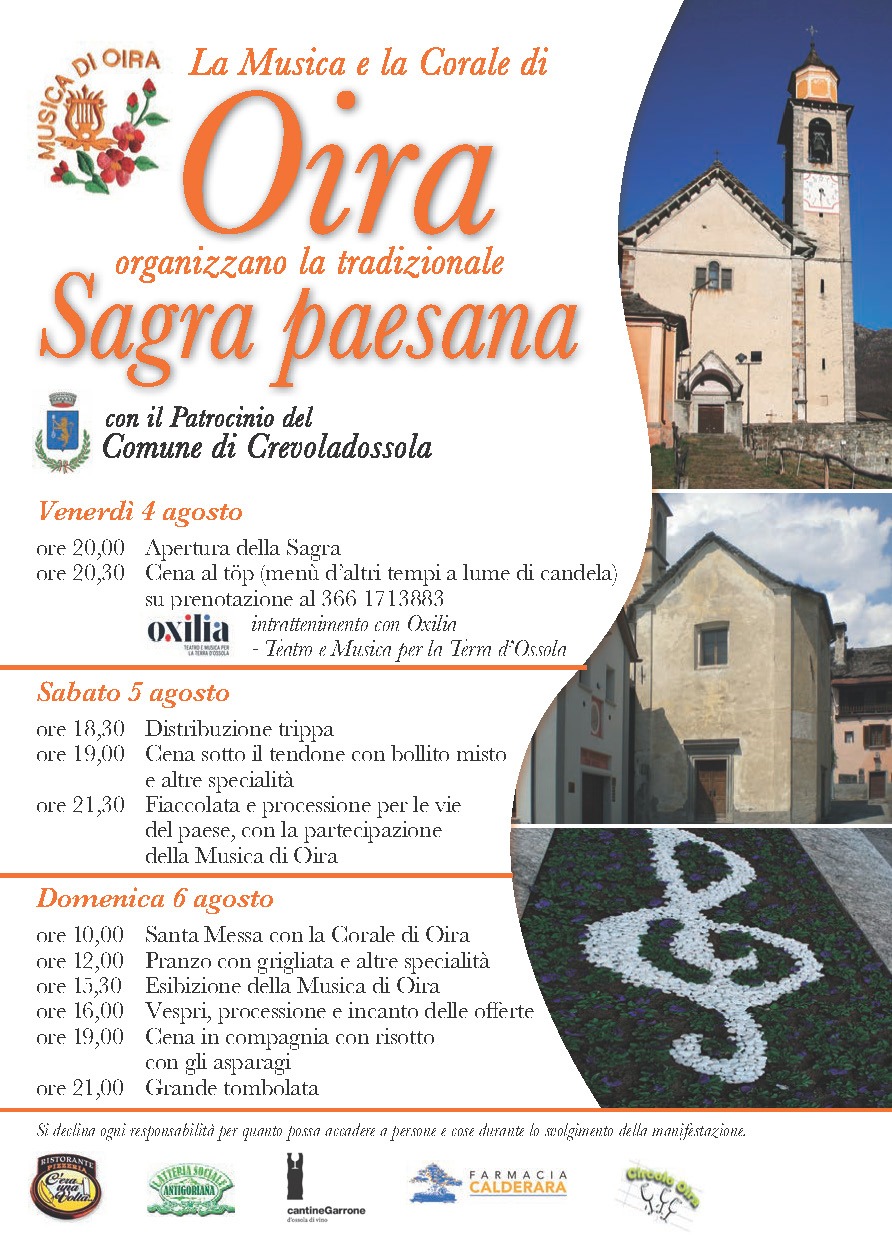Organizzato dalla Musica e dalla Corale di Oira, con il patrocinio del Comune di Crevoladossola
